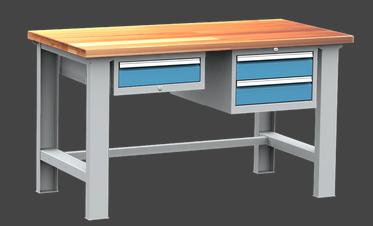 pracovní stůl, levý kontejner s 1 zásuvkou, pravý se 2-mi, deska z bukové spárovky, tl.40mm, PÚ - šedomodrá kombinace RAL 7035/5012 | |