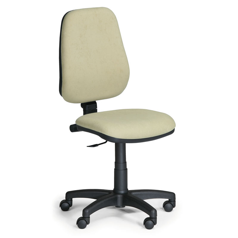 Kancelářská otočná židle - anatomicky tvarovaná - kloubové nastavení zádové opěrky s permanentním kontaktem - čalounění 100% PES, mikroplyš - černý plastový kříž - tvrdá kolečka na měkké podlahy, průměr 50 mm, průměr čepu 11 mm - nosnost 110kg - odolnost látky 65 000 cyklů |