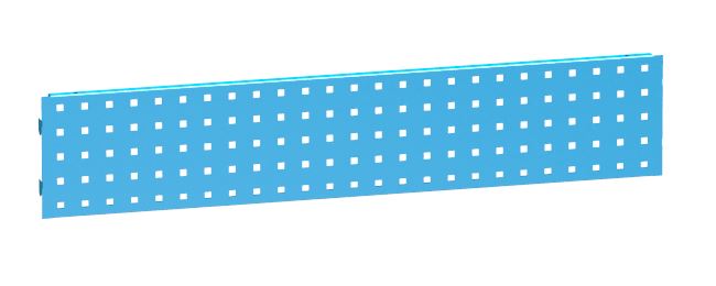 Perfo panel má čtvercové otvory 10x10mm, rozteč otvorů 38x38mm. šířka 1500 mm výška 190 mm hmotnost 2,6 kg |